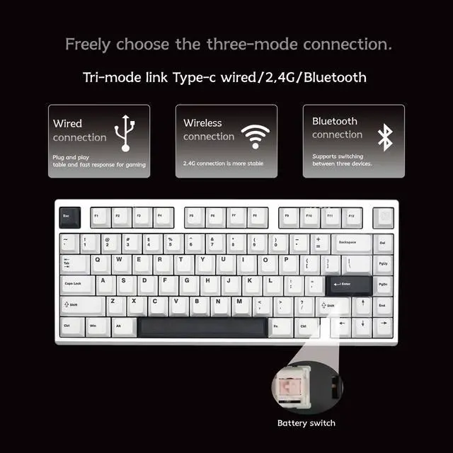 • No tools needed! The innovative quick-detachable ball lock structure lets you pop off the top case in secondsperfect for swapping switches, adding sound-dampening foam, or changing keycaps. With hot-swappable PCB, you can freely replace switches (compatible with most mechanical switch types) without soldering, making customization effortless.