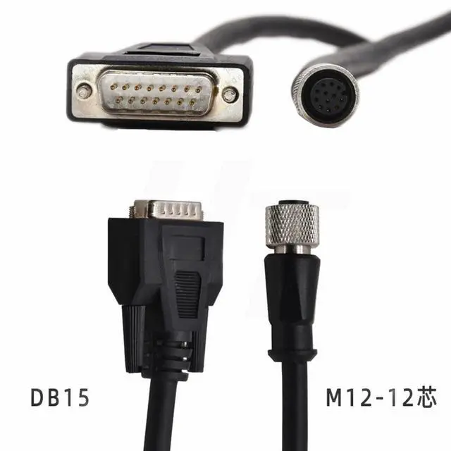 M12 12-pin A-coding female to DB15 male RS-232 cable, 3 meter ^^ Data cable for Cognex In-Sight 2000 7000 8000 series Vision System and Sensor, part number CCB-PWRIO-MOD-03 ^^ M12 A-coded 12 pin female to DB15 connectors, gold-plated contacts, nickel plated brass shell, waterproof, solid and durable connection ^^ Cable with braided shielded layer, good EMC, provides shielding from electromagnetic disturbance. Connector with thread locking, anti-vibration, easy quick connect and disconnect ^^ High-speed data transfer, no signal loss