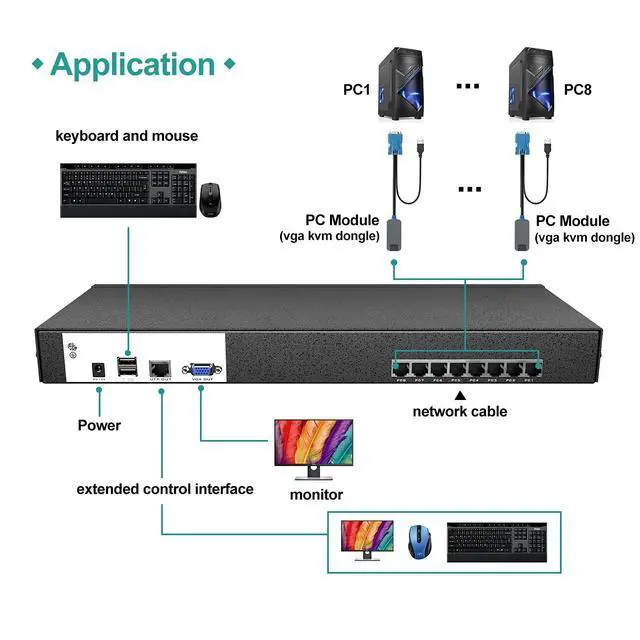 Noted: USB HDMI/VGA CAT6 KVM Dongle NOT INCLUDED in package, PLS