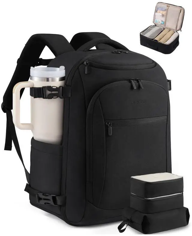 Certified by multiple budget airlines such as Spirit, Frontier, and JetBlue, and featuring a suitcase-style 180 degree opening design for quick airport security checks, it is the ideal personal carry-on for stress-free travel. ^^ Includes 3 Packing Cubes & Separate Wet Compartment: This travel backpack personal item size comes with 2 portable packing cubes and 1 shoe bag. The portable packing cubes feature a breathable mesh design, allowing neat organization of small garments such as underwear and socks while keeping them fresh. Additionally, it includes a 42 cm long shoe bag that can accommodate 12 pairs of shoes. ^^ Ergonomic DesignThis backpack for travel Designed with ergonomics in mind, it features a comfortable and breathable carrying system with thickened 3D honeycomb-pattern shoulder straps that prevent shoulder fatigue and effectively distribute weight. Paired with a load-reducing sternum strap, the backpack hugs the back closely to further lighten the load. ^^ Multi-Scenario UseThis casual backpack is suitable for a variety of scenarios including university campus use, daily commuting, business trips, outdoor hiking, short-term travel, and weekend getaways. If you have any questions, please feel free to contact uswe are committed to resolving any issues for you.