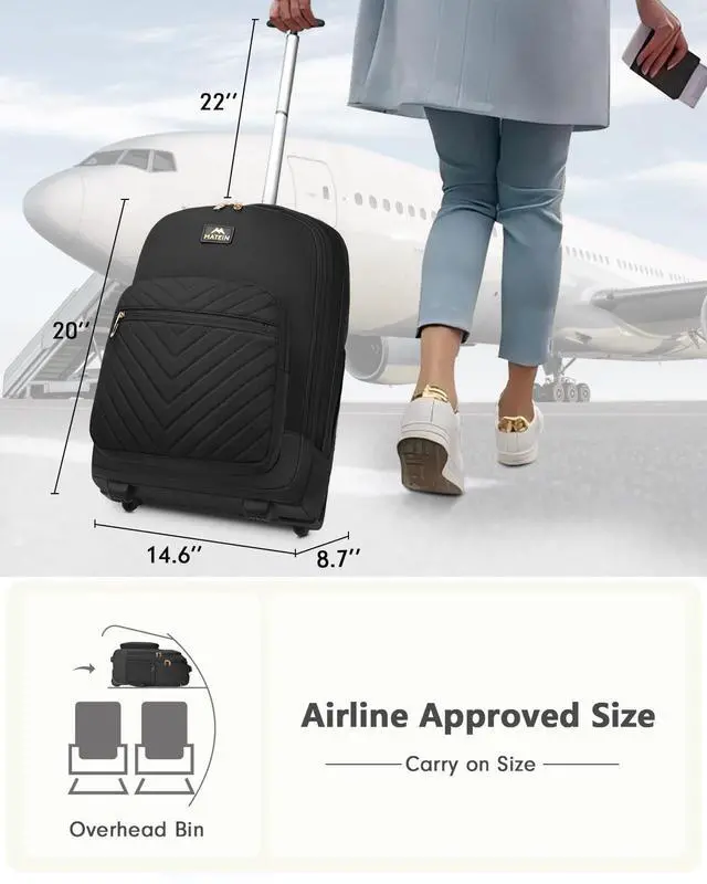 Travel-Friendly: With dimensions of 20 x 14.6 x 8.7 inches and a net weight: 4.93 lbs, this rolling backpack for women meets airline carry-on size requirements, and fits easily in overhead compartments (Not suitable for under seat). roller backpack for adults TSA-friendly design unfolds 180 degrees for smooth security checks. A front zip pocket keeps your passport and boarding pass within reach, while side pockets hold water bottles or umbrellas, providing quick and easy access on the go ^^ Organized and
