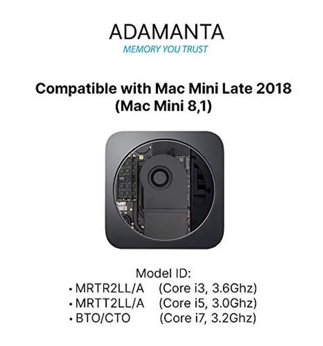 Display model ID: 19, 1 (i5 3.0GH z, i5 3.1GH z, i5 3.7GH z, i9 3.6GH z) ^^ Memory Upgrade Compatible with Late 2018 Mac Mini model