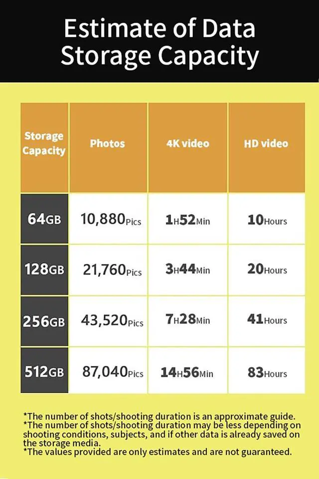 Multiple Capacity Options Available in 64GB, 128GB, 256GB, and 512GB options to suit your storage needs. ^^ Please note that actual usable storage may be slightly less due to system formatting and a portion reserved for card management functions, which is a standard industry practice to ensure optimal performance and reliability.
