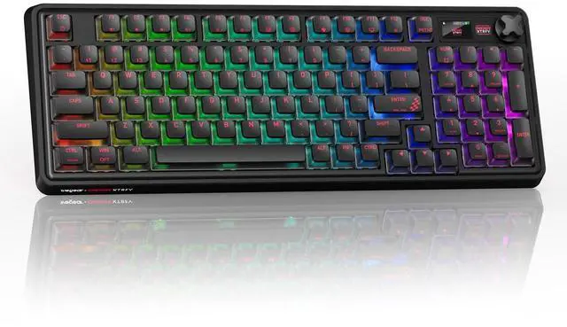 Combined with the CHERRY MX2A switches and PBT keycaps, every press is met with reliable responsiveness and satisfying precision ^^ Dynamic RGB Illumination Customize your wireless keyboard from a spectrum of 16.8 million colors and 12 pre-set modes. The softly side-diffused lighting and 4-way transparency design ensure the effects are both vibrant and comfortable for your setup ^^ Long-Lasting Power The built-in 4000mAh battery delivers up to 1100 hours of runtime (tested via Bluetooth, lighting off). The bluetooth keyboard with an intelligent sleep mode, it provides weeks of reliable power for uninterrupted work and play ^^ Space-Efficient Design The 95-key compact layout provides all essential functions in a space-saving form.