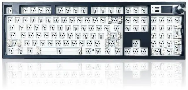 Multimedia TFT Display&Knob Design: GMK104 kit featured TFT screen and metal knob that you can custom GIFs, and display clearly shows real time, update battery level, and connection mode. Metal knob doubles for volume adjustment and screen control functions ^^ 104 Keys NKRO