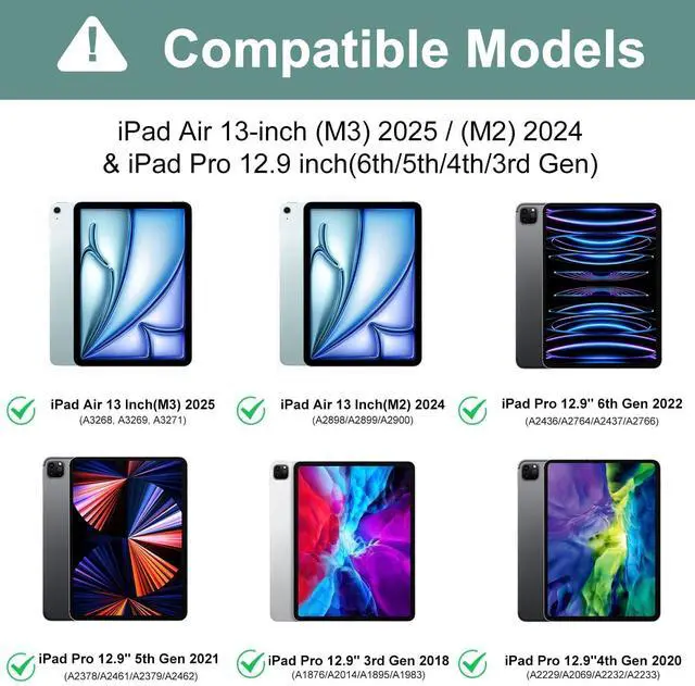 Compatible Devices: iPad Air 13 inch (M3 2025 / M2 2024) and iPad Pro 12.9 inch 6th/5th/4th/3rd Gen