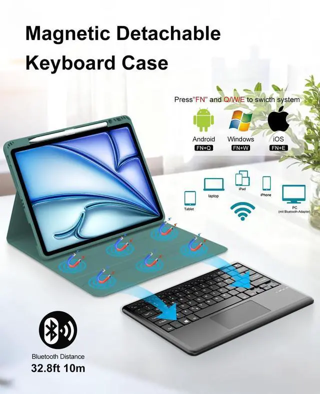 Keyboard Case for iPad Air 13 inch (M3 2025 / M2 2024) & iPad Pro 12.9 inch 6th/5th/4th/3rd Gen, Magnetic Detachable Wireless Touch Keyboard, Precise Cutouts Folio Cover Case with Pencil Holder