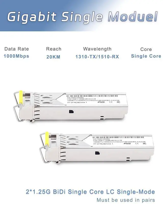 Transceiver: Includes 2 pcs gigabit single-mode transceiver modules; 1310nm transmission wavelength and 1550nm receiving wavelength; 20 km transmission distance; BIDI single-core SMF must be used in pairs for simultaneous reception and transmission ^^ Flexible
