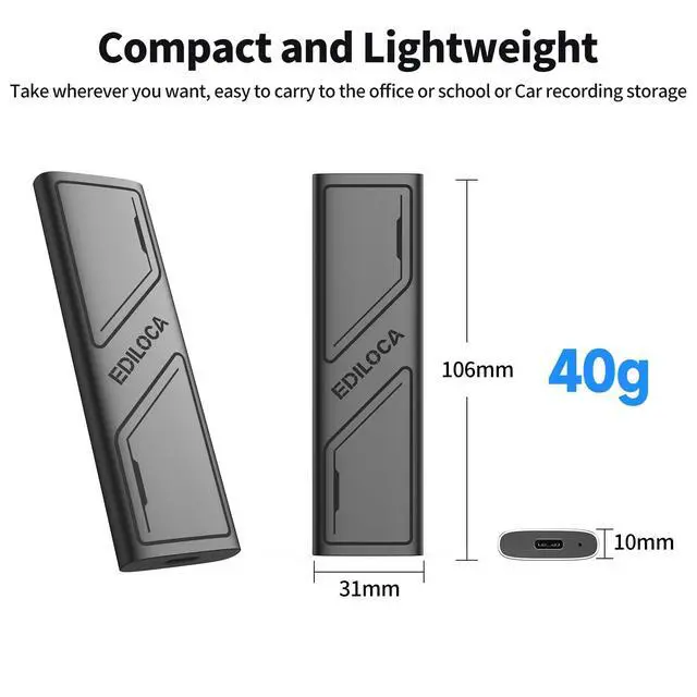 compatible: Seamlessly connects with Mac, Windows, Android, and iOS (USB-C) systems. This SSD connects to laptops, desktops, tablets, and smartphones, and is ideal for storing large files in car dashcams, making it perfect for transferring, editing, or backing up large files between different devices.