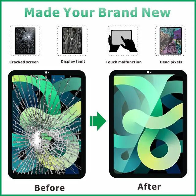 ^^ Superior Quality: Our for iPad Air 4 Gen lcd screen replacement with full perspective, anti-fingerprint, smooth touch. And our screen replacement for iPad air 4 have passed rigorous quality control checks and we will pack them well before shipment.