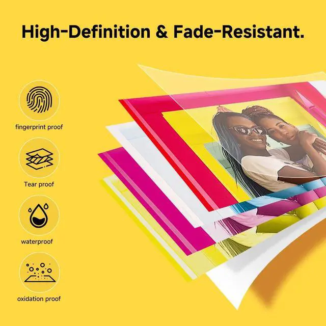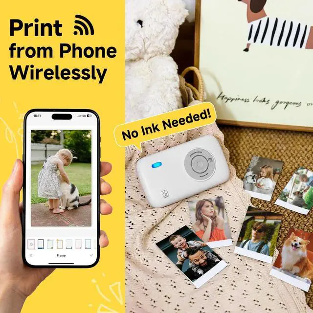 Setup is a breeze: just press the button, load the ribbon included in the box, and you're ready to print 10 vivid photos in seconds. ^^ [Superior Quality]This photo printer for iphone reserves your memories in stunning detail and durability. Our advanced 4-PASS dye-sublimation technology prints photos in layers of color followed by a protective laminate. The result is rich, flawless prints that are resistant to fingerprints, water, and fadingensuring your cherished moments stay vibrant for generations. ^^ [Unlock Creativity]Your printing journey is powered by the free Heyprint app. After a quick pairing, you can instantly print, or first personalize your photos with a wealth of creative tools. Apply filters, add cute stickers and frames, or create collages. The app also offers a unique AR scanning feature that brings your printed photos back to life with digital animation. Choose between bordered prints to handwrite precious notes, or borderless photos for a modern, full-image look. ^^ [Perfect Gift]More than a portable photo printer, it's a gateway to shared experiences and heartfelt gifts. This complete bundle makes it an ideal present for any occasion, allowing friends and family to create physical photo albums, unique DIY projects, or spontaneous scrapbooks.
