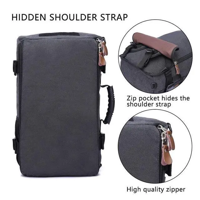 : Approx 12"L x 18"H x 7" W. It's about 30 L. Its main bag, the computer compartment, fit a 15.6 -inch laptop. ^^ Multipurpose Daypacks Hybrid (Backpack/Duffle Bag/Shoulder Bag/Travel Bag) conversion. Can be used several different ways. Our product provides a all in one system design that allows you to pack for traveling, business meetings, outdoor activities while conveniently accommodating you with comfort and safety for your personal items.