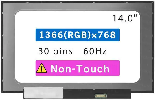 • Screen Size : 14.0 inch ; Max Resolution: HD 1366x768 ; Data Cable Pins: 30 pin ; Warranty : 3 Months ;