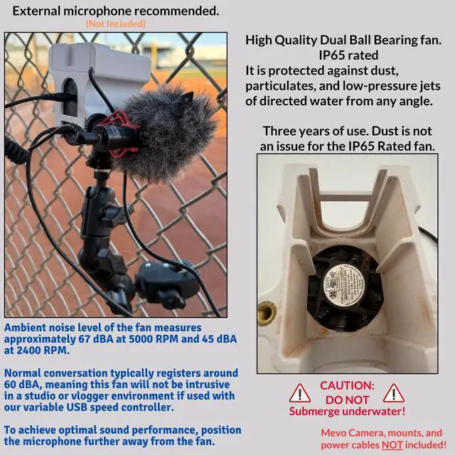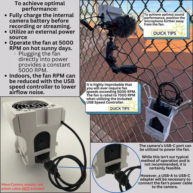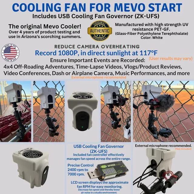 Cooling Fan/Case. Compatable with the Mevo Start Camera. Helps Prevent Camera Overheating in Hot Static Environments While Recording and Streaming Live Sporting Events, Music, Fishing, Hunting, and more.
