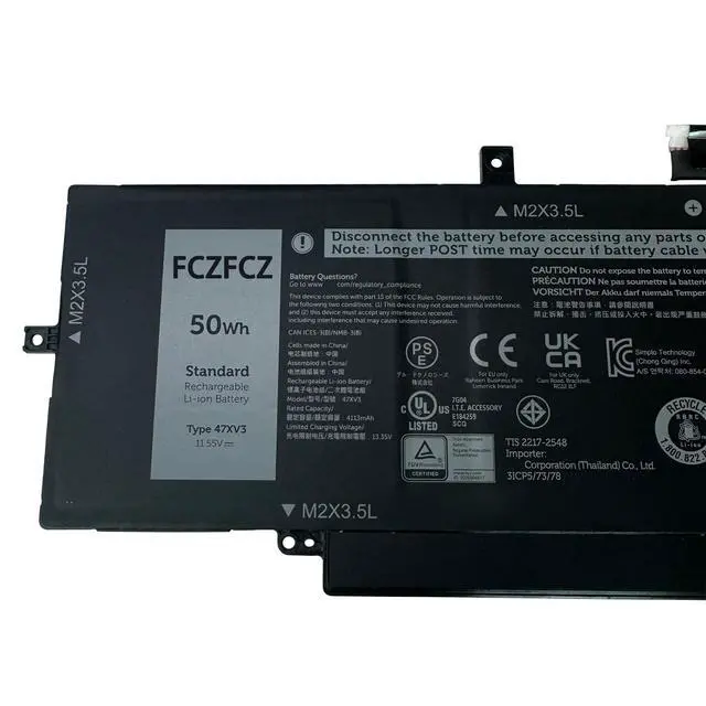 Condition: Brand New. ^^ Replacement for Part Number47XV3 5Y3T9 31CP5/73/78 ^^ Compatible with Machine Modelsfor Dell Latitude 9330 series. ^^ SafetyAll FCZFCZ products are Certified by CE, UL for safety. Each battery is factory tested before shipment and at good condition, and have its mark. Built-in circuit protection ensures both safety and stability. Each battery has high capacity to provide enduring, continual use. ^^ InstructionsPlease open the back cover of the laptop before purchasing and confirm that the original battery type is the same as the picture. Please read the battery instruction manual carefully before installing the battery. Please install the battery correctly and ensure that the battery interface and the motherboard are firmly connected. Please use the original charger to charge the laptop. After battery installation, discharge the new battery to 5% (not 0%), then charge and cycle 3-4 times to wake up the new battery.