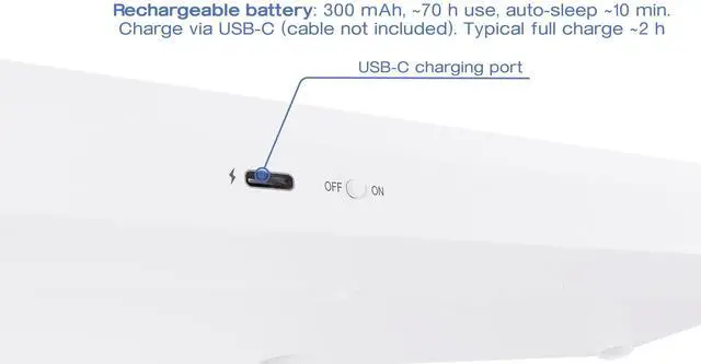 Install the included Windows layout (via the on-box QR) to enable one-tap math input. ^^ Compact, quiet, printed 78-key compact (ISO-style) layout with low-profile, quiet keys and clearly printed blue/gray math legends for fast recognition. ^^ Rechargeable battery 300 mAh internal battery, around 70 hours of use, and auto-sleep after ~10 min. Charge via USB-C. Typical full charge ~2 h. ^^ Status at a glance 4 LEDs show 2.4 G mode, Bluetooth mode, FN-Lock, Caps/low battery/charging, so you always know whats on. ^^ Slim & portable About 11.6 5.0 0.87 inches and ~ 10.6 oz (295 128 22 mm and ~300 g): easy to slip into a backpack for class, lab, or library sessions. ^^ AI button dedicated key for Copilot Press to instantly invoke Copilot (supported on Windows 11 23H2+); on earlier builds it opens Windows Search. ^^ Whats in the box + guarantee Keyboard + USB-A receiver + quick-start (QR download). 1-year warranty and 30-day returns (no questions asked) try it and start typing equations faster today.