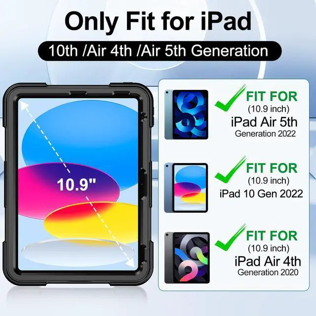 Model Number: A2757/A2777/A2696 (2022 released), Not compatible with any other iPad devices. ^^ [IP68 Waterproof] This waterproof case for iPad 10th generation offers up to 20 feet (6m), 30 minutes waterproof certification, fully protects your device from water, rain and snow while maintaining full touchscreen functionality. It can be used not only indoors, but also while swimming, fishing, sailing, kayaking or other water sports, never worry about damaging your iPad again (Please check the waterproof iPad case is fully sealed before use. ) ^^ [Full Body Protection] This heavy duty iPad 10th generation case is made of high-quality impact resistant PC and soft silicone material. The silicone cover and 4 bumper corners can withstand up to 99% of impacts, and it passes the 15FT drop test, which meets military-grade drop test standards. Our 10.9 inch iPad case is shockproof, impact-resistant, and completely rugged to protect your iPad 10th generation from drops and scratches from all angles. ^^ [Kickstand & Elastic Hand Strap & Shoulder Strap] Built-in foldable kickstand, provides different angles of use for viewing, typing or drawing. The elastic hand strap helps you hold iPad easily, even with one hand, without worrying about dropping it.