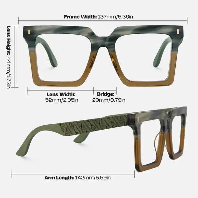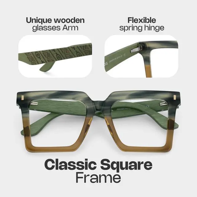 Classic square frames for men, perfect for everyday wear ^^ Wooden glasses legs with hand-carved patterns give you a mysterious retro feel ^^ Our glasses are designed with spring hinges, which can perfectly fit your face and give you a unique wearing experience ^^