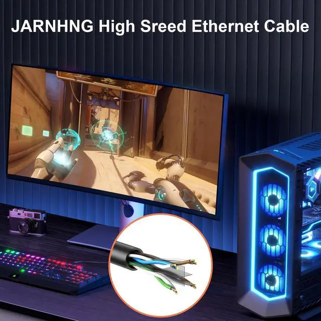 ^^ Outdoor Durability: Designed specifically for outdoor environments, this JARNHNG Ethernet cable can withstand extreme weather conditions, whether its high heat or freezing cold. It is ideal for outdoor applications, including parks and construction sites, effectively solving various installation challenges while maintaining a high-speed network connection.