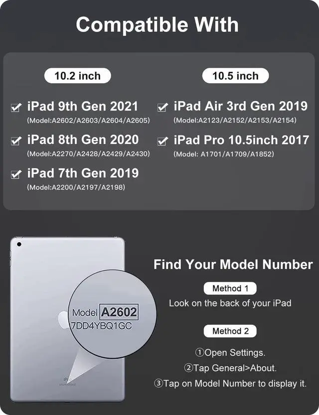 Number: A2602/A2603/A2604/A2605), compatible with iPad 8th Generation 10.2 inch 2020(Model