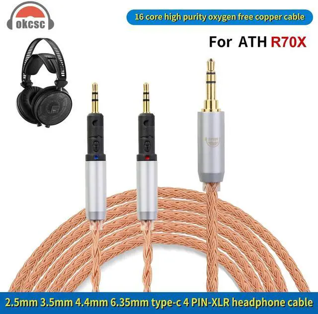 okcsc ZT16 R70X R70XA Upgraded Replacement Cable 16 core OFC high Purity Oxygen Free Copper Hand-Woven Cable, Dual R70X to 6.35MM Extension Cord, for R70X R70XA Headphone 6.35MM 4.92FT
