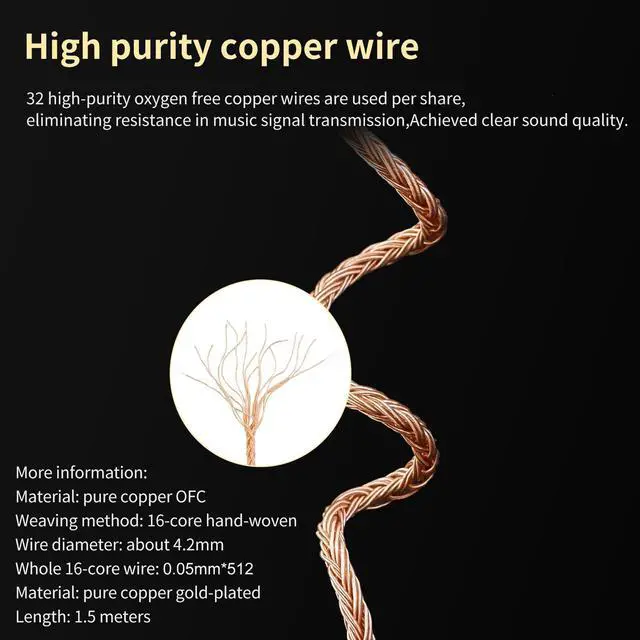 • 16 Core Hand-Woven OFC High Purity Oxygen Free Copper CableBy using High quality gold-plated plugs,stable connections and high conductivity are achieved.32 high-purity oxygen free copper wires are used per share,eliminating resistance in music signal transmission,Achieved clear sound quality,which effectively reducesthe loss during signal transmission.