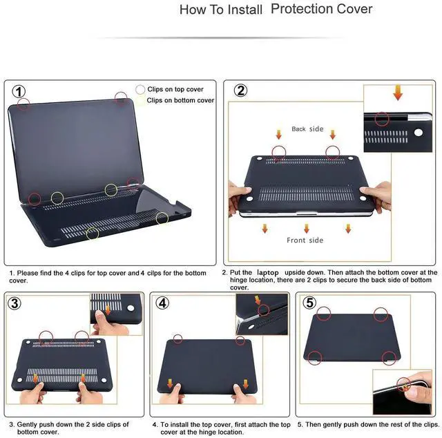 The protective case is made of high-quality plastic, non slippery texture, Does not show finger printsPerfect fit, make your Mac Laptop look like new. Four rubber feet can hold the device firmly in place. also prevent wear on the bottom of the Mac Pro 13 case. ^^ Easy Installation & Removal All buttons and functions can be used. Snap design, easy to install and remove. All ports can be accessed without removing the casing. Perfectly matched ventilation holes on the bottom case keep the Laptop cool. NO CUT OUT design.