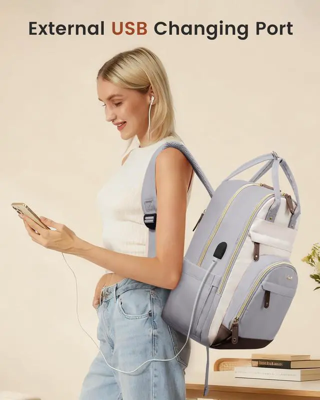 weight: 1.8 lb. ^^ LAPTOP PROTECTIONThe backpack with laptop compartment has a dedicated separate 15.6 -inch laptop pocket, a 9.7 -inch iPad slot. The pockets are sewn around with a cushioning material that maximizes physical protection for your laptop. ^^ USB PORT DESIGNGreat tech design. You can easily connect your phone to the USB port, giving you a more convenient way to charge your phone while walking. (POWER BANK IS NOT INCLUDED) ^^ COMFY & ANTI-THEFT DESIGNMesh airflow shoulder strap design, ergonomic shoulder strap length. Rivet-reinforced double handles, and the pack is reinforced and sewn at every stress point for absolute durability. An Anti-theft Pocket on the back. It is safe guaranteed for protecting your valuable items inside. No need to worry about stolen items. ^^ LUGGAGE STRAP DESIGNBackpack for traveling on airplane. Designed for hiking, it helps you free your hands and back from the burden. Make your travel more convenient and enjoyable. Work necessities, college supplies and travel essentials. ^^ MULTIPURPOSE BACKPACK & QUALITY WARRANTYThis backpack purse is perfect for University, work, travel, business, daily use and outdoor activities.