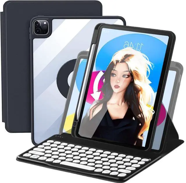 Keyboard Case for iPad Air 11 Inch 2025 (M3) /2024 (M2), Magnetic Detachable Keyboard Case for iPad Pro 11 inch 2022 2021 2020 2018 Release, for iPad 10.9 Air 5th 2022 4th 2020 (Not for 10th 10.9 ), Wireless Removable BT Keyboard, 360 Rotatable Slim Cover with Pencil Holder and Transparent Hard Back Shell, Auto Sleep/Wake