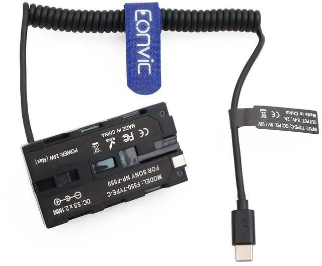 • The cable connects any power source with USB C female connector to any Camera/Monitor designed to be powered by NP-F970 batteries.