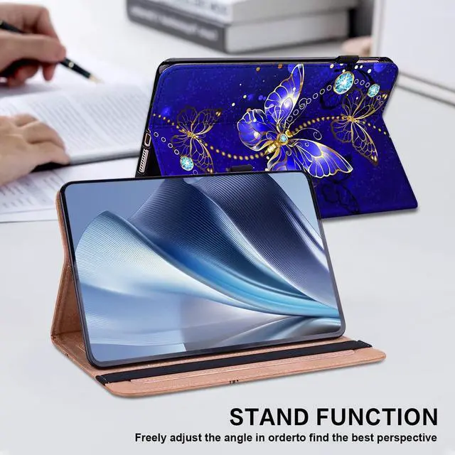 ^^ [High quality]: Hardshell back cover with flexible TPU bumper protects your tablet from shocks, drops and impacts. Soft microfiber interior front prevents your tablet from scratched. It is closed with an elastic band, which makes the tablet firmer when closed, and protects the screen and the cards inside from falling out.