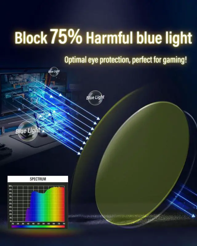 DescriptionPlaying video games means extended exposure to blue light from bright screens, which can lead to eye strain, headaches, and even disrupt melatonin production, making it harder to wind down after late-night gaming sessions. Most blue light glasses on the market use orange-tinted lenses to block blue light effectively, but this can cause significant color distortion, taking away from the authentic visuals that gamers value. Goiteia gaming glasses introduce a new option with yellow lenses, specifically designed for gamers seeking high blue light protection without sacrificing color accuracy. These yellow lenses block harmful blue light while significantly reducing color distortion, so the visuals stay natural and immersive.