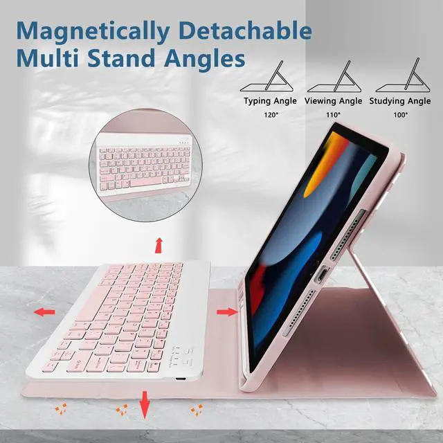 [iPad Keyboard Case Compatibility] This iPad keyboard case is designed for 10.2 inch iPad 9th generation 2021 (A2602/A2604/A2603/A2605), iPad 8th generation 2020 (A2270/A2428/A2429/A2430), iPad 7th generation 2019 (A2197/A2200/A2198), iPad Air 3rd generation (A2123/A2152/A2153/A2154) 10.5 inch, iPad Pro (A1701/A1709/A1852) 10.5 inch. Please check the model number on the back of your iPad before purchasing. ^^ [Pencil Holder and Multi-angle Adjustable Support] This iPad tablet case has a built-in Pencil holder that makes it easy to carry Pencil and removal. The iPad case has three notches that can be used at three angles, and is made of non-slip material that supports the iPad to stand up.