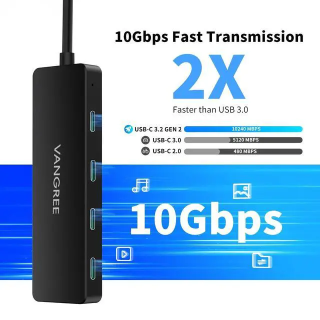 USB-C Multiport Hub: VANGREE USB C splitter expands into 4 USB C 3.2 ports. This USB-C splitter can connect multiple USB-C devices such as hard drives, flash drives, mouse, keyboards, etc.