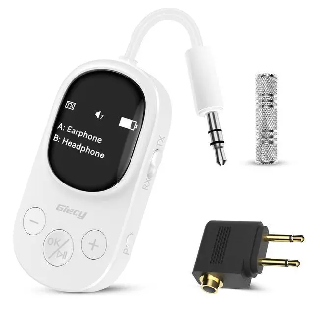 Two Headphones: Perfect for sharing audio with a companion, this Bluetooth adapter supports dual Bluetooth connections. You can connect two wireless headphones or AirPods simultaneously, making it ideal for travel, flights, or even gym sessions. The long battery life ensures uninterrupted use for over 20 hours. ^^ 3.5 mm