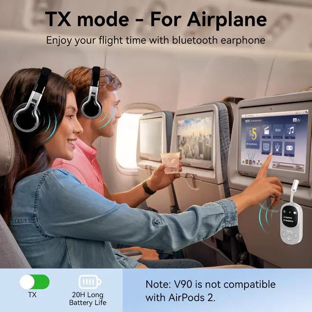 Travel-Friendly Bluetooth Adapter: Designed for easy use on airplanes, gym equipment, cars, and TVs, this Bluetooth transmitter and receiver allows you to connect two wireless headphones or AirPods simultaneously. Its 3.5 mm AUX jack is compatible with most devices, making it an ideal solution for enjoying entertainment or music during your travels or workouts. ^^ aptX Low Latency for