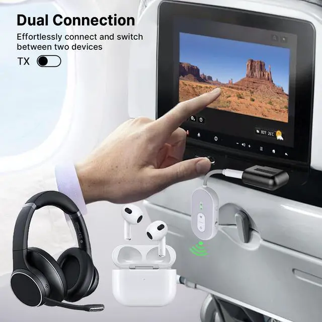 Dual LINK LISTEN TOGETHER: Intuitive LEDs allow you to easily connect up to two devices and share the audio with a friend while you fly. In RX mode, the receiver can concurrently connect to two Bluetooth-enabled smartphones or computers ^^