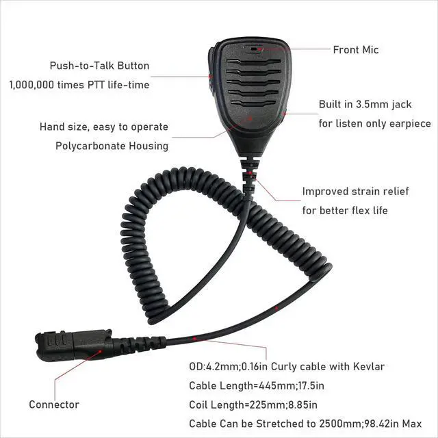 User-Friendly Design: The connector of this speaker microphone is built for stable connectivity and excellent operating life. Durable 360 tightened lapel/shoulder clip for multi-style wearing. With a 3.5 mm jack, connect a listen-only earpiece of your choice ^^