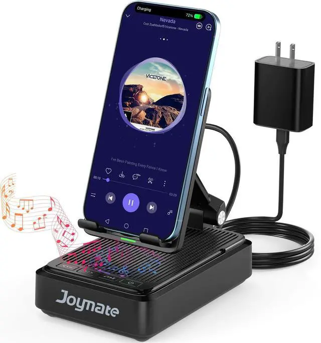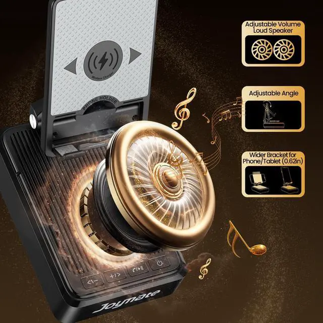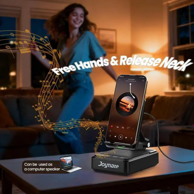 Stand Panel: The stand panel is equipped with soft non-slip silicone surface that reduces vibration and maintain stability when placing your device. The robust phone stand with speaker is made of high-quality ABS material to ensure long-lasting performance. ^^ Compact and