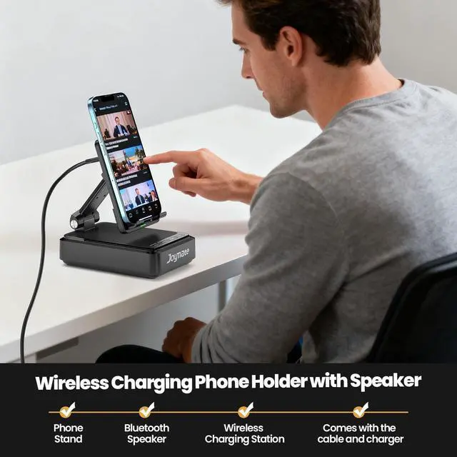 Multi-Functional Wireless Charging Stand: Easily power up your smart phone without hassle of cables and hold your phone steady while listening to your favorite tunes. Cool 3-in-1 accessory for desk space saving, ideal for using in the living room, bedroom, kitchen, or office. This wireless charging phone holder comes with the cable and charger, please note it is not power bank. ^^ Loud Speaker with