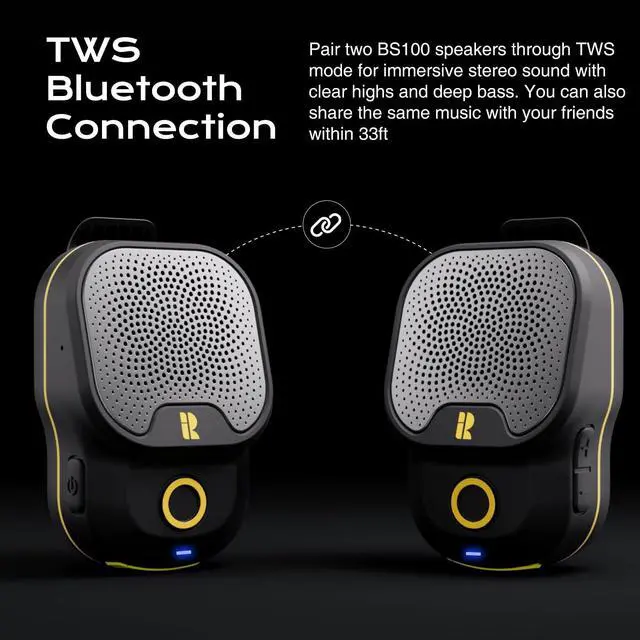 Louder Sound: Pair with other RY-BS100 clip speaker for 10W louder sound and deep bass in TWS mode. Imagine it, you and your loved one listening to the same track simultaneously while running ^^