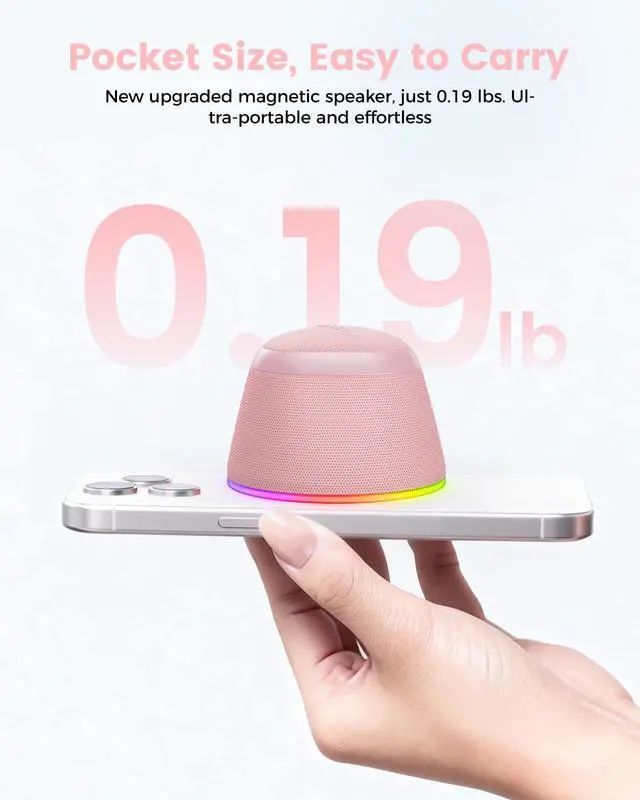 NOTE: Compatible with iPhone 12/13/14/15/16 Series and Magsafe Covers do not need a Metal Ring. Other mobile phones & phone cases have to use a Metal Ring (included) ^^ [Loud Sound & TWS Connection] You can also pair two speakers via Bluetooth 5.3 to create richer and louder sound, making an immersive experience for you ^^ [IPX5 Waterproof Speaker] Due to its tiny and compact design, it can be carried everywhere. Additionally, our waterproof speaker features an IPX5 water-resistant rating to protect it from water splashes and sweat. ^^ [Various Dynamic Light Modes] This coolest wireless speaker has 9 different light modes. Its dynamic LED lighting creates vibrant vibes wherever you go. Just short-press the Light button to select your favourite light effect. You can enjoy music up to 8 hours at 30% volume with the light off.