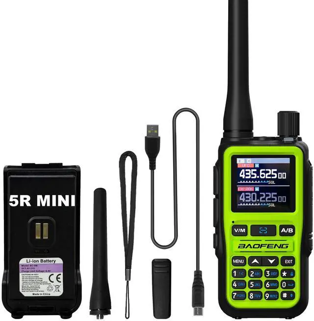 BAOFENG UV-5R Mini Two Way Radio BF-5R Mini Walkie Talkie Wireless Power Adjustable Tiny Size Frequency Copy 999 Channels Type-C Portable Ham Walkie Talkie (Green)