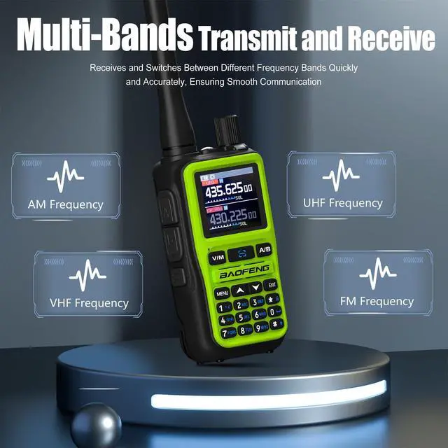 Features and Functions 1.6 band scan receiver, FM78-108MHZ; AM108-136MHZ; VHF136-174MHz, 220-260MHz; UHF400- 520MHz, 350-390MHz. 2. Transmit frequency VHF 144-148MHz; UHF420-450MHZ. 3.5W /2W RF output, dual PTT transmitter. 4. Wireless read/write frequency. 5.1. 44" TFT large screen, full keyboard, full open menu operation, local channel storage and deletion. 6. Full keyboard manual frequency input, 999 channel memory. 7. One-click frequency pairing, easy pairing and grouping. 8.