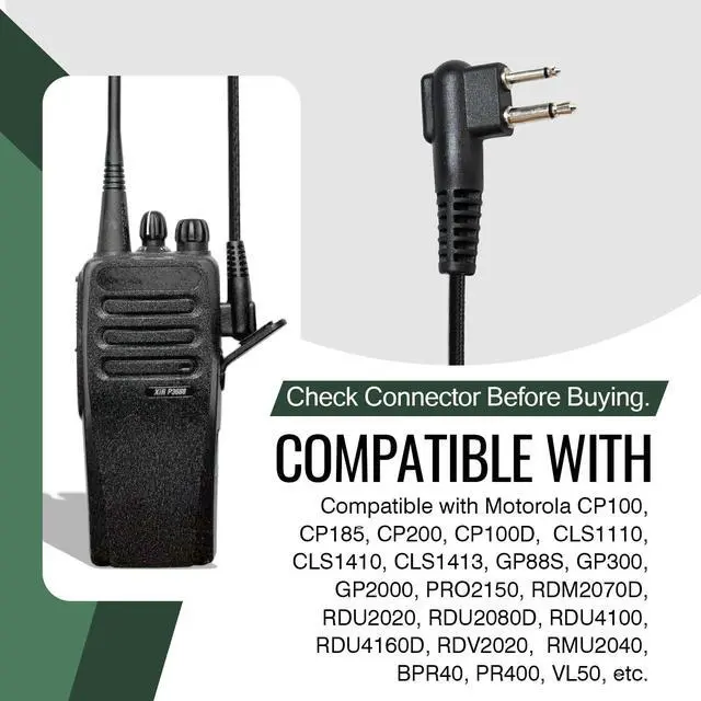 Compatible with Motorola CP100, CP185, CP200, CP100D, CP200D, CLS1110, CLS1410, CLS1413, GP88S, GP300, GP2000, P040, PRO1150, PRO2150, RMM2050, RDM2070D, RDU2020, RDU2080D, RDU4100, RDU4160D, RDV2020, RDV2080D, RDV5100, RMU2040, BPR40, PR400, VL50, etc.