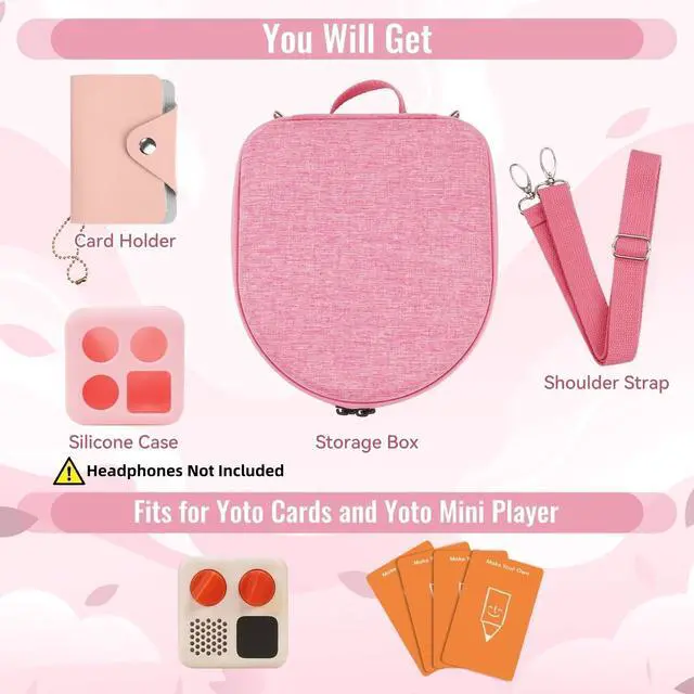 Full protection against falling and lossThe highly elastic silicone cover tightly wraps the YOTO host, effectively buffering the impact of falling; the storage box has a built-in shockproof liner + adjustable shoulder strap, which can be carried out to prevent loss, allowing children to use it safely and independently. ^^ One-piece storage to say goodbye to clutterThe exclusive compartment can accommodate *YOTO host (with silicone cover) + official wired headphones + card book* at the same time, solving the pain point of cards, headphones, and host being separated and easily lost, and the toy room/travel suitcase will be neat and orderly from now on.