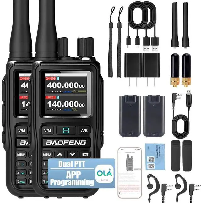 [NEXT-GEN WIRELESS & WIRED PROGRAMMING] Gain total control over your communication. Unlike standard models, this radio offers Bluetooth App Programming for instant, cable-free updates via smartphone. For advanced users, we also include a PC Programming Cable in the box. Perfect for Ham Radio Operators who need flexibility in the field or at home. ^^ [AIRBAND SCANNER & FREQUENCY CAPTURE] Elevate your listening experience. Equipped with AM Aviation Band (108-136MHz), this device acts as a handheld scanner for air traffic control monitoring. The One-Key Frequency Search (Manual P15) instantly detects and clones frequencies and privacy codes from nearby radios, making it the ultimate tool for Team Communication and Group Pairing.