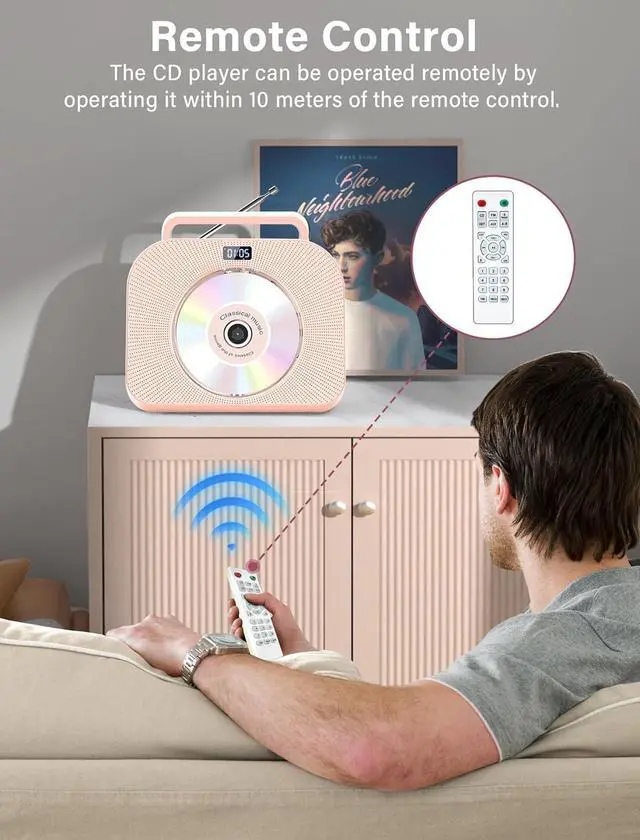 Desktop CD Player with Time DisplayThis portable CD player is equipped with an LCD display that shows the time like a clock. It can also be set to alarm and timer on/off according to our needs. If we want to fall asleep with music, but worry that the bluetooth CD player is still playing music after we fall asleep, we can set the timer to turn off the audio CD player; And it can also be placed on the bedside table to act as an alarm clock, waking us up at the time we set with the gentle sounds of nature.