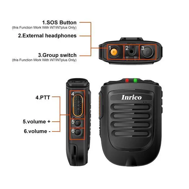 Android phoneNOTE: 1. that this Bluetooth microphone is compatible with android 5.1 F25/G25(not compatible with F22/G22), t-320 and android 6.0, android 7.0 and above, such as 3G-W7, 4G-W7plus zello2. Non-W7/W7+ emergency alarm group switching is not available*SOS function*Big PTT*Group switch*Wireless Microphone work with realptt, zello