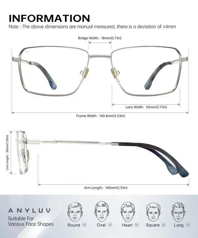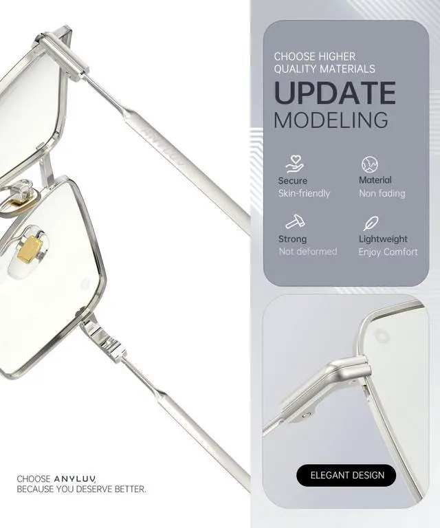 LIGHTWEIGHT & ALL-DAY COMFORT: ANYLUV Blue light glasses Crafted by Metal frames and flexible hinges, These blue light glasses for men provide a snug, pressure-free fit. Soft silicone nose pads prevent slipping, making them ideal for extended screen time at work, gaming marathons, or nighttime driving. ^^